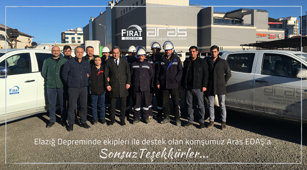 Fırat EDAŞ’ın sosyal medya hesaplarından yayınlanan teşekkür mesajında: “Elazığ depreminde ekipleri ile destek olan Aras EDAŞ'a sonsuz teşekkürler...” ifadelerine yer verildi.