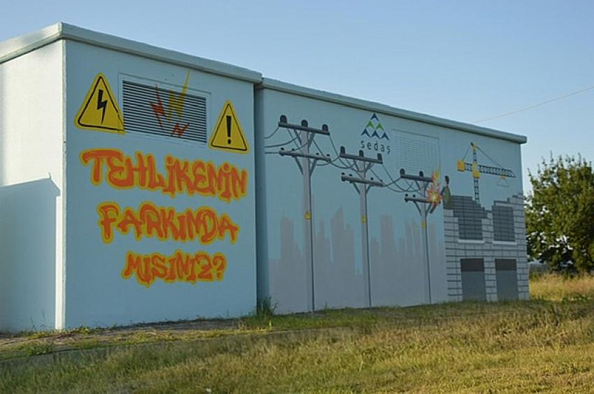 | SEDAŞ trafoları tuval olarak kullanarak; faaliyet bölgesindeki tüm müşteri ve vatandaşlara farkındalık mesajları iletirken, trafoların dış yüzeyinin daha estetik görünmesini sağlıyor. | ||