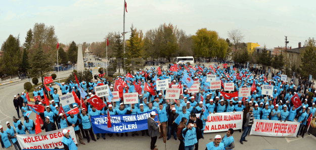 Elbistan ilçesinde Cumhuriyet Meydanı'nda düzenlenen mitingde konuşan Tes-iş Afşin Şubesi Başkanı Mustafa Kılıç, işçi alımlarında taşeron işçilere ve bölge insanına öncelik tanınmasını istedi. Kılıç, "EÜAŞ Genel Müdürlüğü tarafından AEL işletme Müdürlüğü ile A ve B Termik Santraline 219 işçi alınacak. Bizim isteğimiz bu işçilerin çalışan taşeron işçilerden veya bölge insanından seçilmesidir. işçi alımı yapılacağı duyulduğunda Nüfus Müdürlükleri'nde yoğunluk yaşanmaya başladı. Muhtarlar il dışından gelen kişilere burada adres veriyorlar. Onlar hakkında da suç duyurusunda bulunacağız" dedi. Başkan Kılıç, "219 kişilik kadroya 7 bin 400 kişi başvurdu. Arazisi kamulaştırılan kişilere devlet öncelik veriyor. Malesef 5 metre, 10 metrekare yer satın alan herkes bu haktan faydalanabiliyor. Arazilerini parselleyip satan insanlar, bu kadar insanı ilçemize davet etmiştir" dedi. Düzenlenen mitinge, MHP, BBP ve Türk Eğitim Sen yöneticileri ile üyeleri katıldı. elbistanolay |