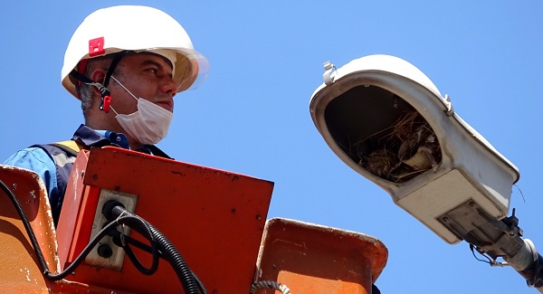 Kısa sürede vatandaşın mağduriyetini gidermek için harekete geçen ekipler, aydınlatma direğine çıktıklarında, lambanın içerisine bir kuşun yuva yaptığını gördü. Şaşkına dönen ekipler, yuvanın içerisinde bulunan 5 yumurtaya da zarar vermemek için direğe yeni bir lamba taktı. Ekiplerin bu hassasiyeti takdir topladı.