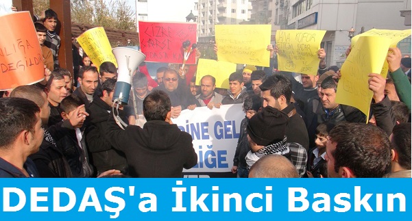 Dün Dörtyol Kavşağı'nda toplanan çok sayıda vatandaş, Dicle Köprüsü`nde bulunan Dicle Elektrik Dağıtım A.Ş. binasına kadar yürüdü. DEDAŞ binası önünde toplanan kalabalık, “Ayakkabı kutusu kadar elektrik istiyoruz”, “Elektrik halkındır, engellenemez” diye slogan atıp, DEDAŞ tabelasını indirip yakmıştı.