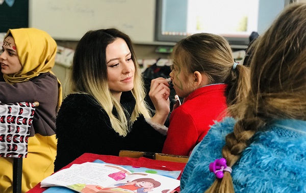 Öğrencileri kendi elleriyle giydirerek, onların sevinçlerine ortak olan Özdemir ve Kösehaliloğlu, çocuklarla uzun uzun sohbet etti.