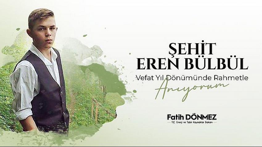 Enerji ve Tabii Kaynaklar Bakanı Fatih Dönmez, Trabzon Maçka’da, pkk terör örgütü tarafından 4 yıl önce şehit edilen Eren Bülbül'ü unutmadı.